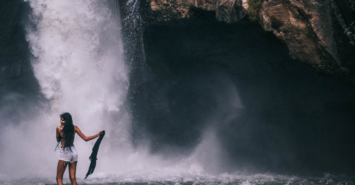 ! [Traveller posing before a dramatic Balinese waterfall, one of the best things to do in Bali's rainy season! image