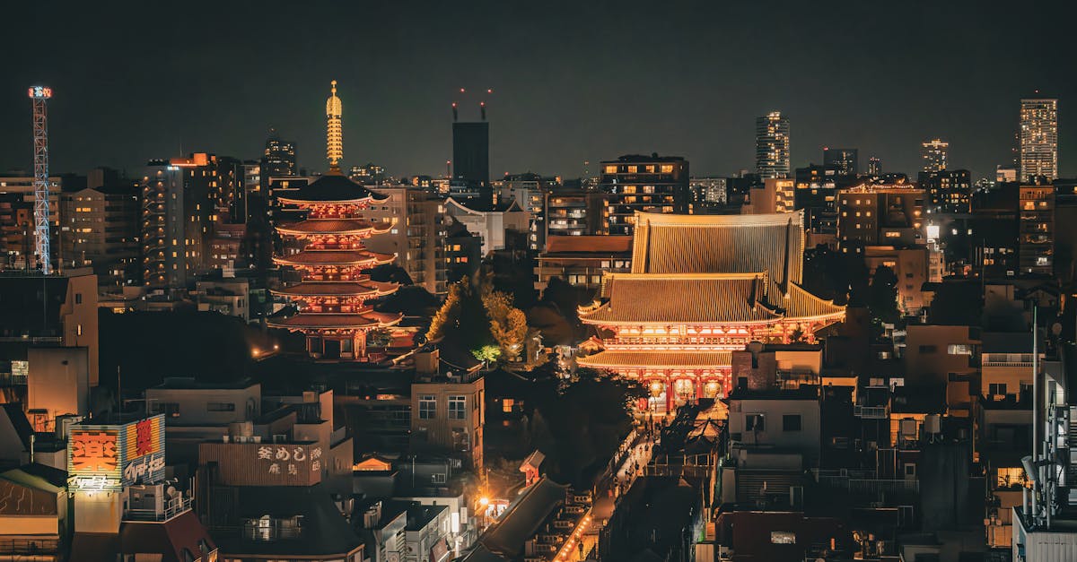 ! [Illuminated Senso-ji Temple in Tokyo at night — perfect backdrop for planning your esim japan setup.! image
