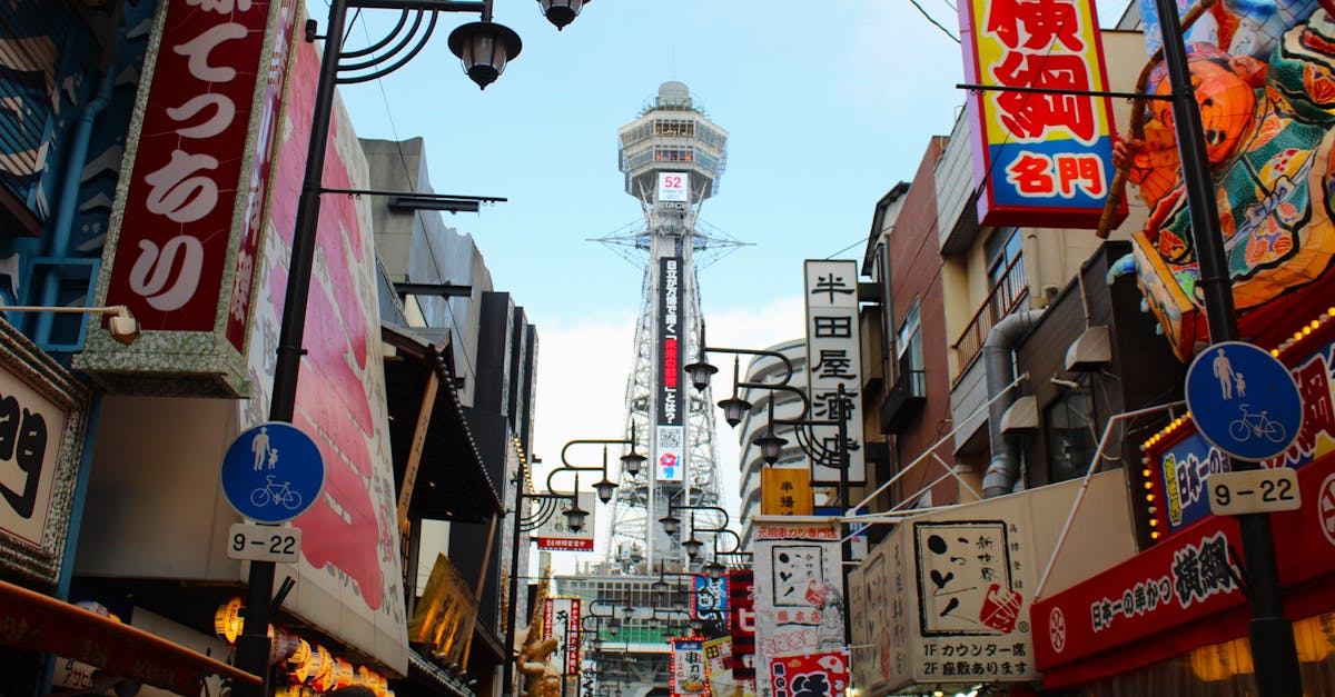 ! [Vibrant Osaka street scene near Tsutenkaku Tower, ideal for choosing the right esim japan data plan.! image
