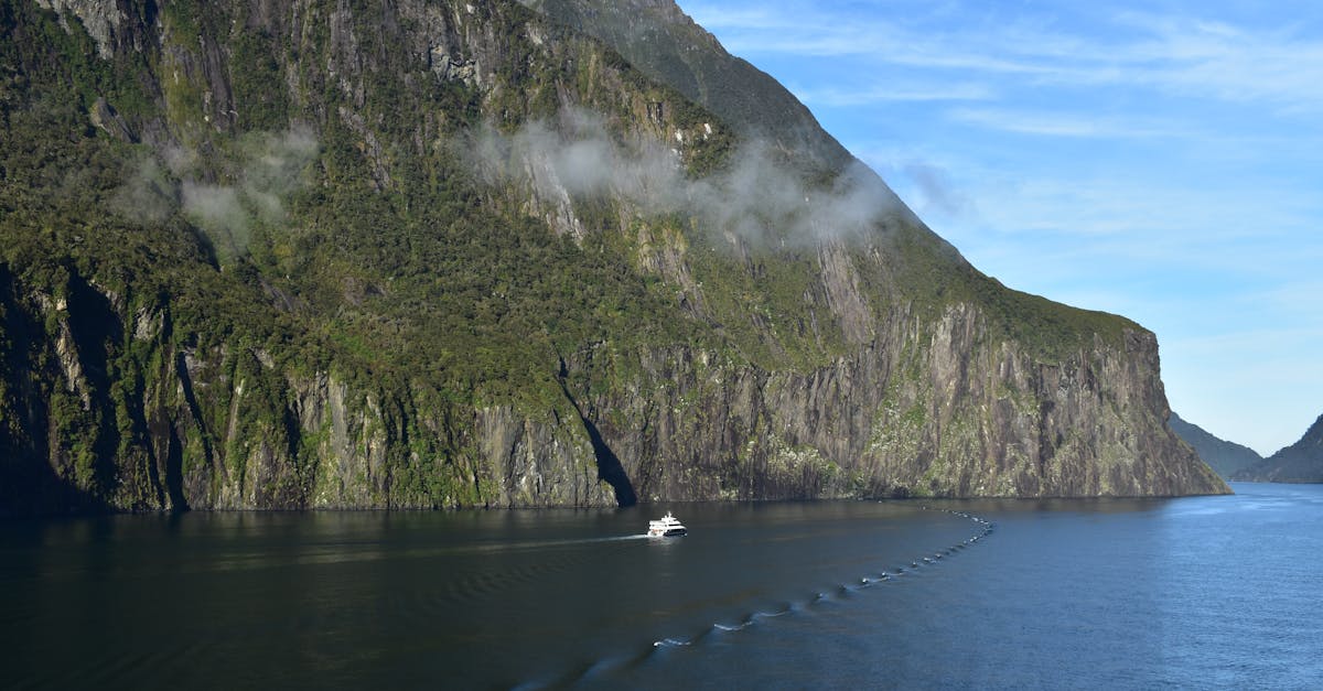! [Cruise boat sailing through Milford Sound, exploring Auckland departure options for Disney cruise NZ.! image