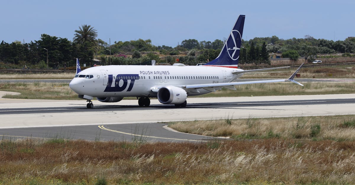 ! [Samolot LOT Polish Airlines gotowy do startu – loty na Cypr z polskich lotnisk w słoneczny dzień.! image