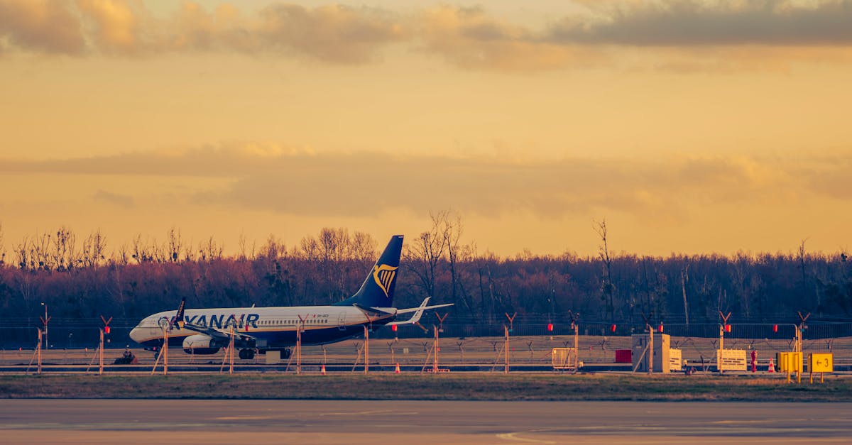 ! [Samolot Ryanair na lotnisku we Wrocławiu o zachodzie słońca – często zadawane pytania o loty na Cypr.! image